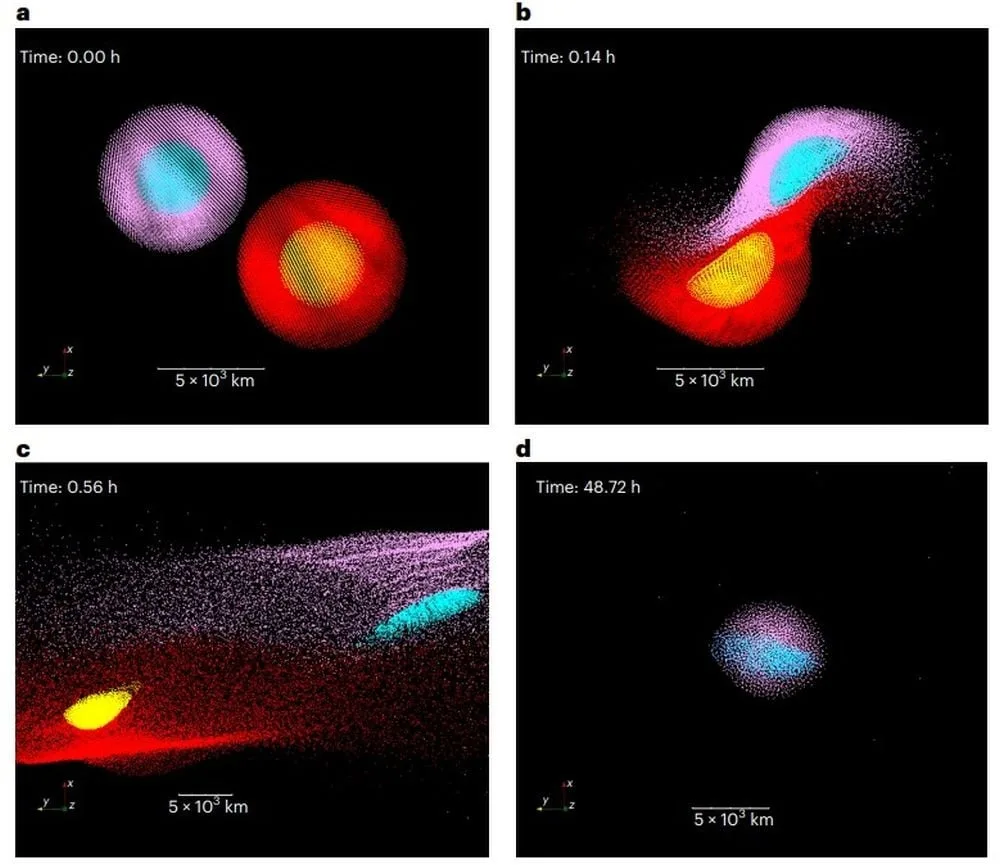 برای آزمودن این ایده، پژوهشگران به سراغ شبیهسازیهای هیدرودینامیک ذرهی هموار (SPH) رفتند. این روش یکی از پرکاربردترین ابزارها برای شبیهسازی رفتار گازها، مایعات و جامدات در حرکت است و در زمینهی برخوردهای سیارهای اهمیت ویژهای دارد.