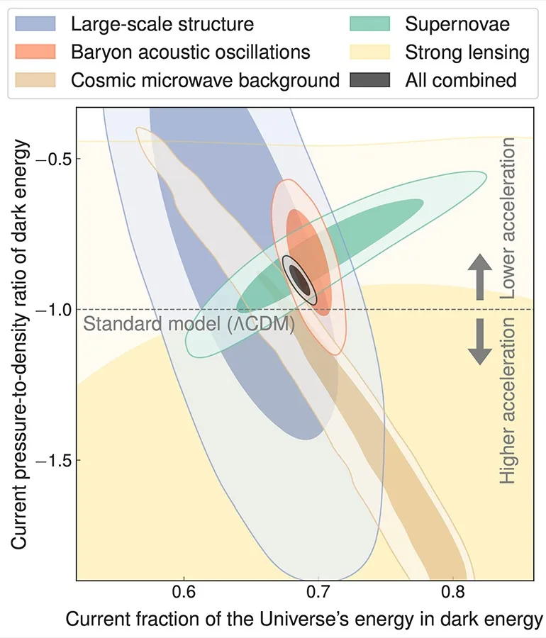 با این حال، تا همین اواخر اکثر دادههای معتبر و گسترده با مدلهای انرژی تاریک ثابت ناسازگار بودند؛ مدلهایی که فرض میکنند چگالی انرژی در طول زمان ثابت باقی میماند، در حالی که فضا در حال گسترش است. این برداشت از ثابت کیهانشناسی پایهای برای مدل استاندارد کیهانشناسی، معروف به مدل ماده تاریک سرد لامبدا (LCDM)، است. با این وجود، علاقه به نظریه جایگزین انرژی تاریک به دلیل ترکیبی از دادههای مربوط به ابرنواخترها، نوسانات آکوستیک باریونی (BAO)، و مأموریتهایی مانند Wilkinson Microwave Anisotropy Probe (WMAP) و تلسکوپ فضایی پلانک افزایش یافته است.