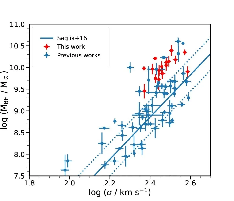 این تحقیق جدید، بر اساس مقالهای در arXiv با عنوان «هشت جرم جدید سیاهچالهٔ فراعظیم بهترین همبستگی را با اندازهٔ هستهٔ کهکشان تأیید میکنند»، نشان میدهد که کهکشانهای روشنترین خوشه (BCGs) در رابطهٔ کلاسیک سیاهچاله-سیگما بیرونافتاده هستند، اما اندازهٔ هستهٔ کمبود نورشان پیشبینیکنندهٔ دقیقتری برای جرم سیاهچاله است.