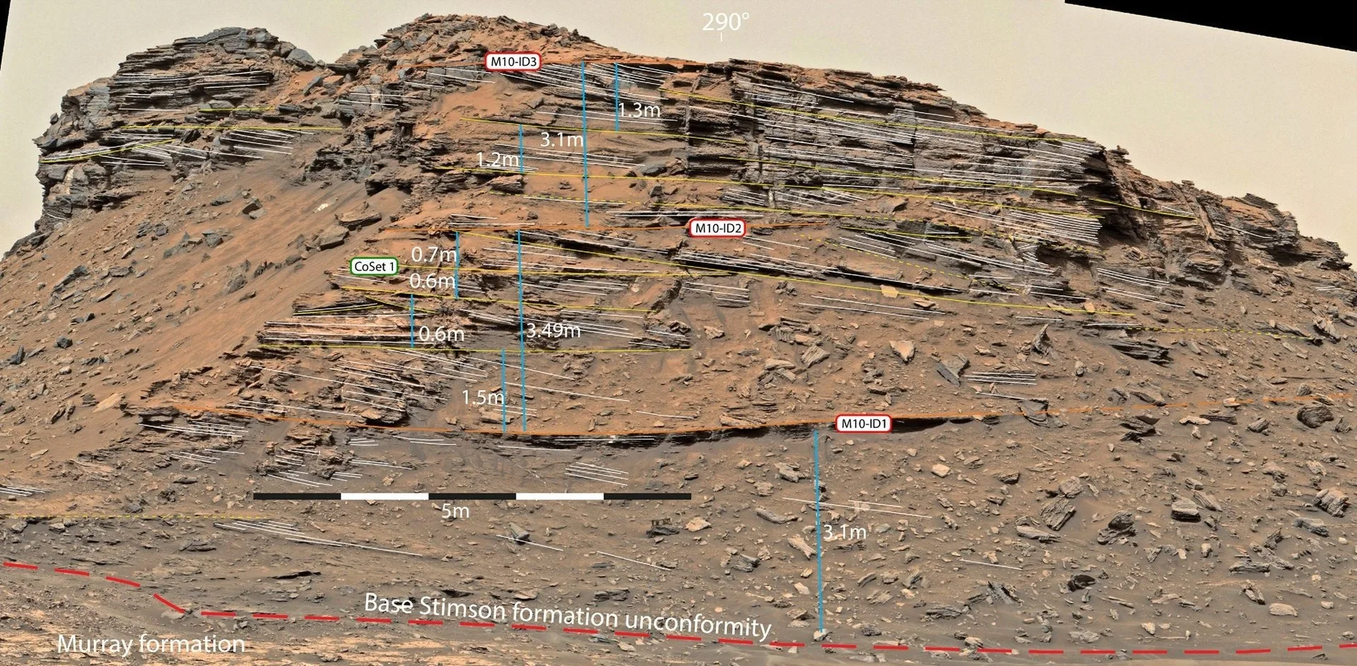 در این پژوهش، تیم تحقیقاتی تپههای شنی سازند استیمسون (Stimson Formation) را بررسی کرد؛ سازهای متشکل از رسوبات بادی و سنگهای رسوبی که در دهانهٔ گیل قرار دارد. کاوشگر کنجکاوی در سالهای گذشته چندین بار شواهدی از این سازندهای «سنگشده» را مشاهده کرده است؛ یعنی رسوباتی که طی زمان سخت و سنگی شدهاند. با توجه به اینکه امروزه دهانهٔ گیل محیطی فوقالعاده خشک دارد، پژوهشگران نتیجه گرفتهاند که تشکیل این سازندهای سنگشده، باید در دوره نواکیان (حدود ۴.۱ تا ۳.۷ میلیارد سال پیش) رخ داده باشد؛ دورهای که تصور میشود مریخ در آن با سیلابهای گسترده و حضور رودخانههایی فعال روبهرو بوده است؛ رودخانههایی که آب را از مناطق بالادست به داخل دهانهٔ گیل منتقل میکردند.